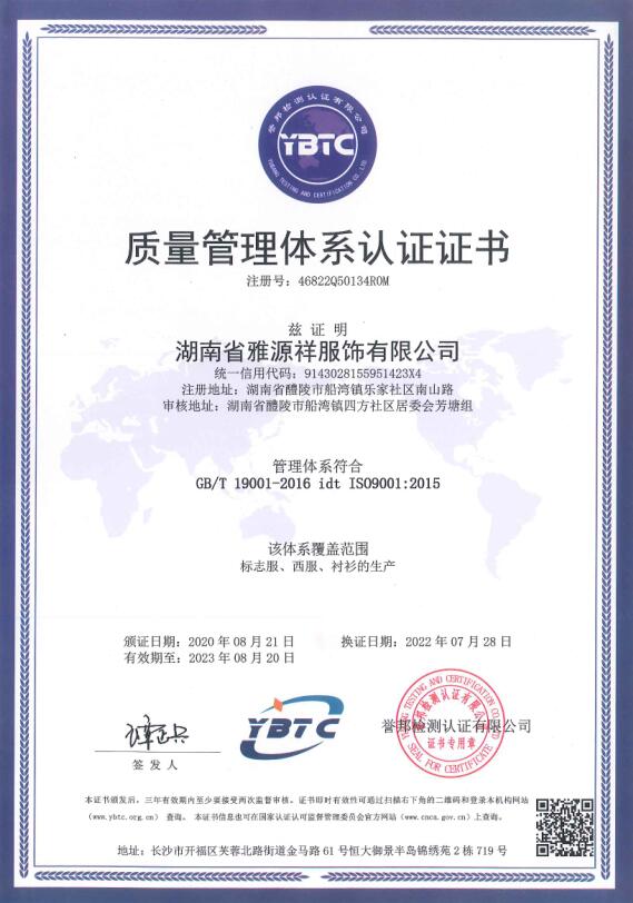 1、企業(yè)概況 湖南省雅源祥服飾有限公司地處湘贛邊境素有瓷城之稱的醴陵郊區(qū),企業(yè)創(chuàng)建于1995年,是行政執(zhí)法制服、被裝的生產(chǎn)企業(yè)。2、組織機構(gòu) 跟隨改革開放的步伐,我公司不斷發(fā)展壯大,公司董事會下設(shè)總經(jīng)理辦公室、生產(chǎn)部、技術(shù)部、質(zhì)檢部、財務部、采購部、業(yè)務部等部門,下設(shè)有流水線西服生產(chǎn)車間、標志服生產(chǎn)車間、襯衣生產(chǎn)車間、... [更多]